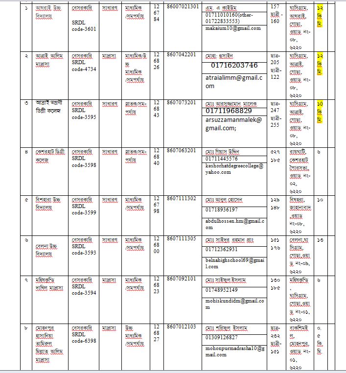 ল্যাবের তালিকাঃ